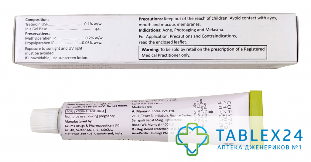 Своей эффективностью этот продукт лечебной косметики обязан главному активному компоненту – Третиноину, относящемуся к группе ретиноидов, структура которых близка к витамину А. Его концентрация в обсуждаемом препарате высока – она равна 0,1%.
