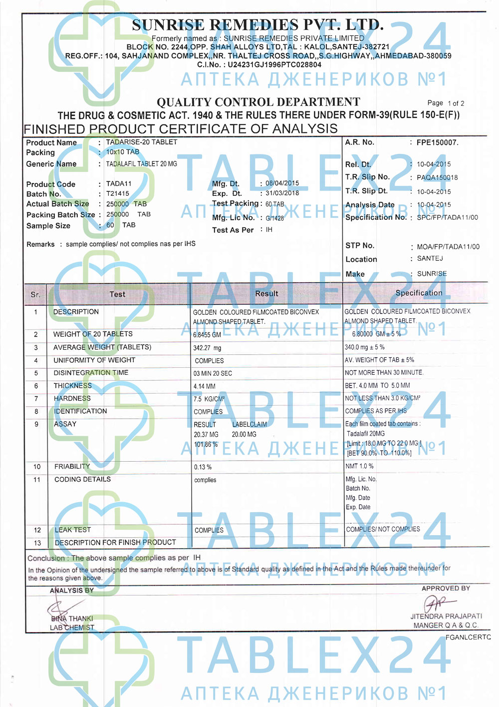 Дженерики средств интимного назначения – специфическая категория лекарственных препаратов. Tadarise купить в аптеке в Москве возможности нет, зато его без труда можно приобрести через интернет. На сайте онлайн-аптеки можно заказать нужное количество таблеток по выгодной цене. Качество препарата подтверждает наличие всей необходимой сопроводительной документации. Покупатель не рискует, а получает возможность эффективно решить собственные половые проблемы без серьезных финансовых вложений.