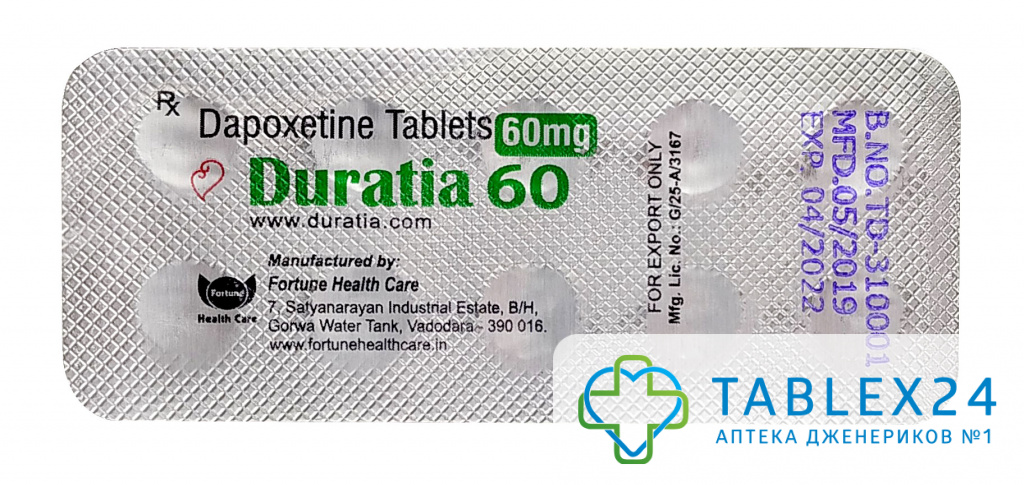Препарат Duratia 60 – это индийская копия известного американского пролонгатора Priligy. Содержание дапоксетина в дозировке 60 мг делает его универсальным решением половой дисфункции, связанной с необходимостью продления времени полового контакта.