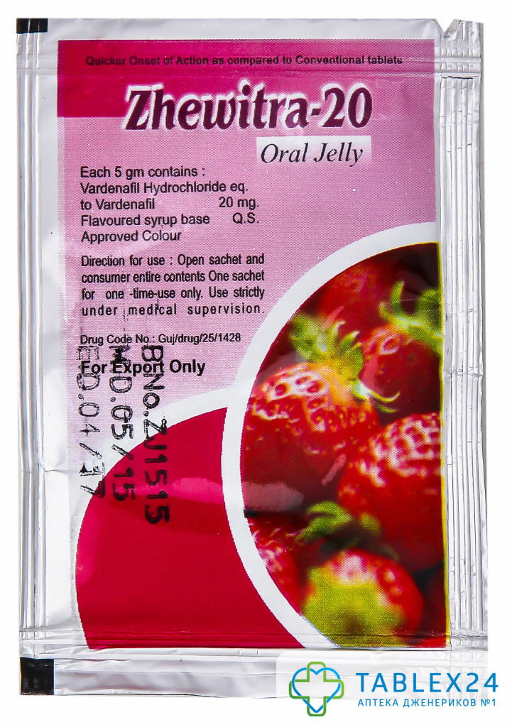 Жевитра Гель – копия препарата Левитра. Его назначение – избавление мужчин, страдающих нарушениями эректильной функции, от их проявлений. Обозначенное средство выпускается в виде желе с приятным вкусом, расфасованного в пакетики.