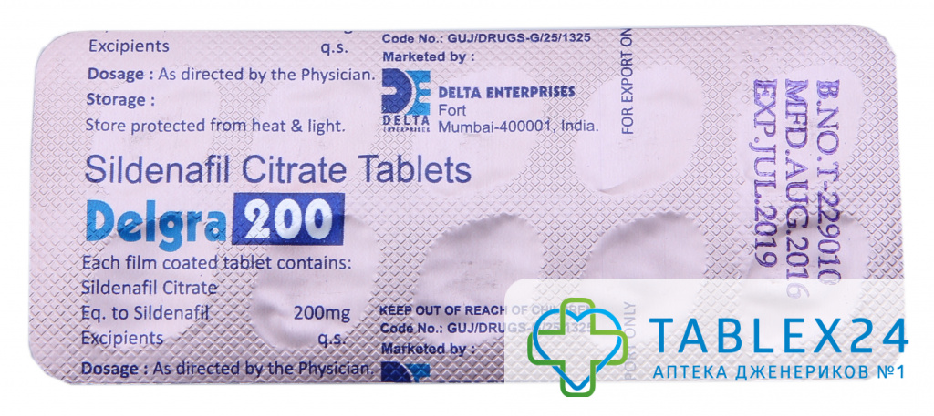 Delgra 200 mg является дженериком (копией) востребованного регулятора потенции Виагра. Препарат содержит максимальное количество активного компонента – 200 мг. Такую дозировку называют экономичной. Купить Делгру 200 в Москве имеет смысл именно с целью экономии. Таблетку обычно делят на несколько частей, удешевляя, таким образом, стоимость нужной дозы, к примеру, 25 или 50 мг, в 2-3 раза в сравнении с ценой одной таблетки с аналогичной концентрацией действующего вещества.