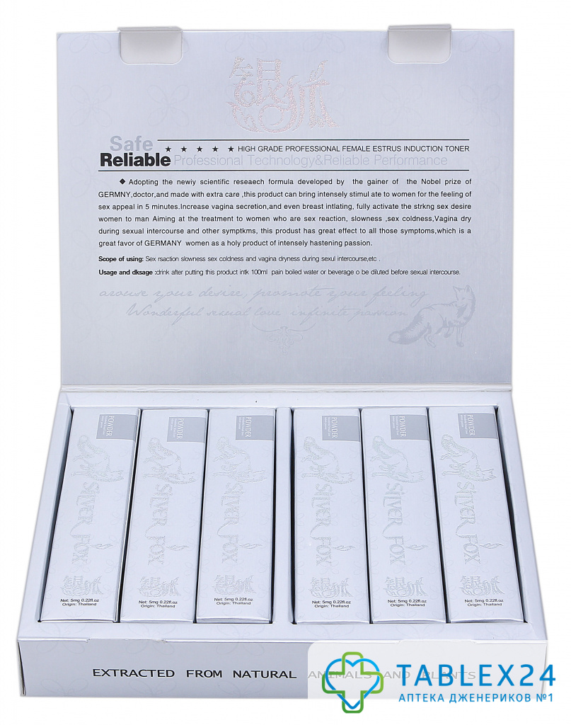 Эффективность возбудителя Серебряная Лиса была по достоинству оценена и мировым научным сообществом. Разработчики Silver Fox стали обладателями престижной Нобелевской премии в области медицины. Указанный БАД входит в ТОП-5 препаратов, обеспечивающих пробуждение эротического аппетита, воспламенение страсти, получение от сексуальных актов максимума удовольствия.