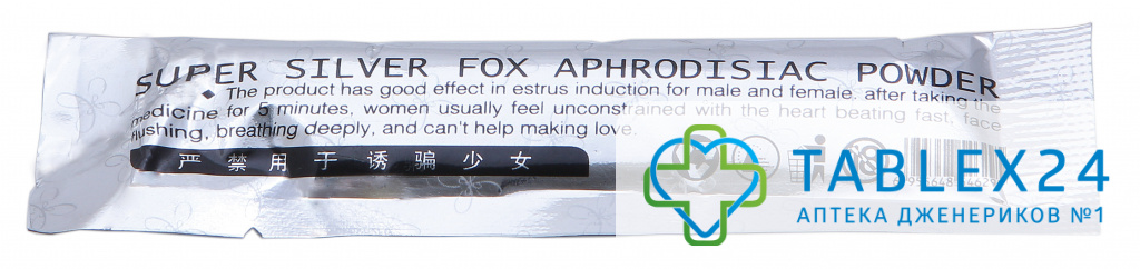 Silver Fox выпускается в виде порошка. Одна упаковка препарата содержит 12 пакетиков возбудителя (по 5 гр.). Содержимое пакетика нужно растворить в любом напитке. Серебряная Лиса начинает действовать приблизительно через 20 минут с момента приёма.